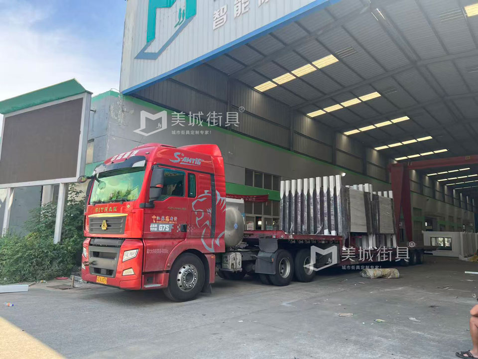 美城街具供應候車亭發貨記錄,以下是公交候車亭發貨現場圖。