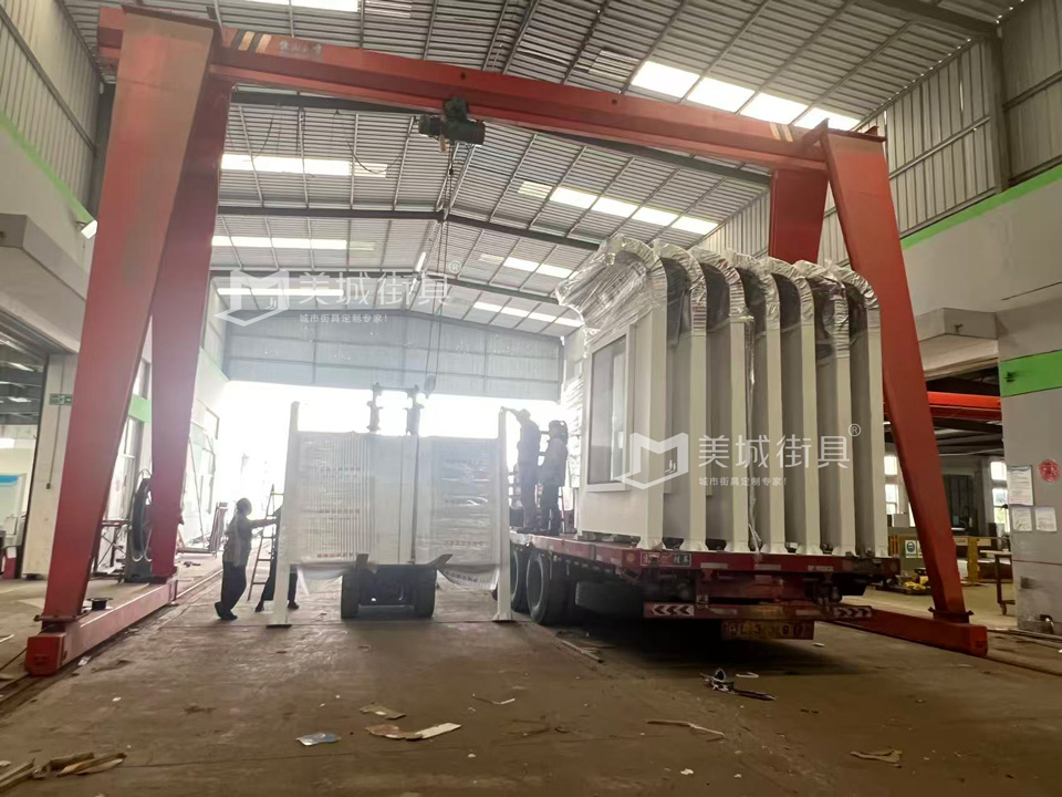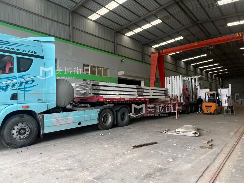 江蘇美城街具為新疆定制公交候車亭第五車發貨案例